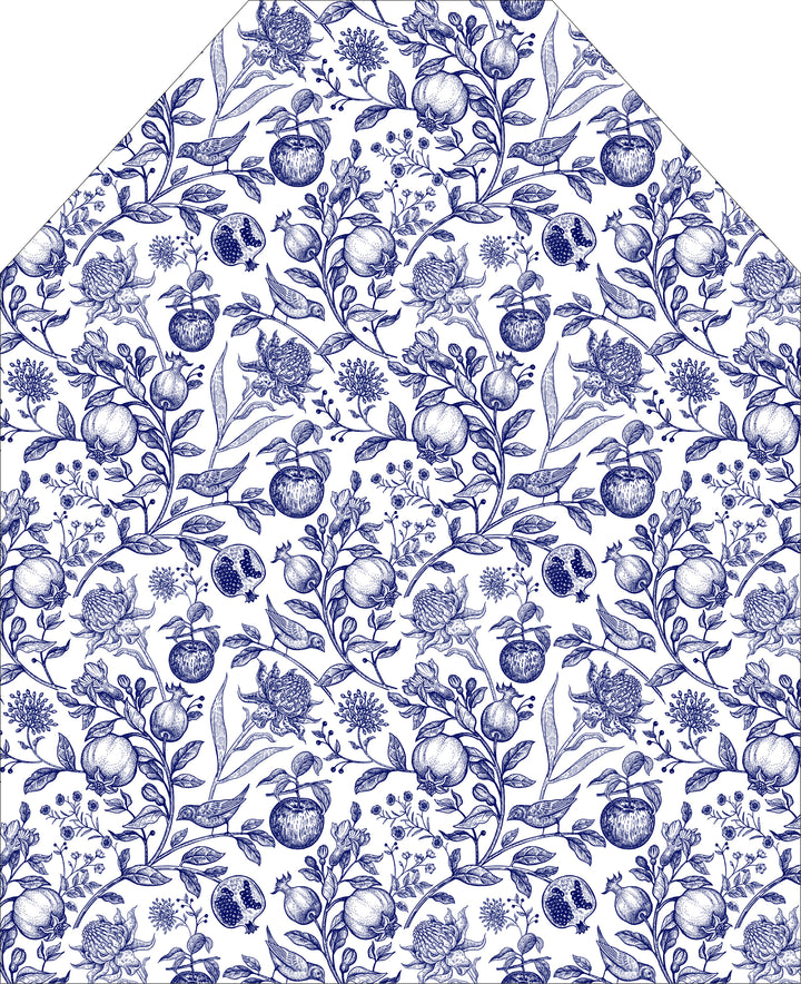 Printed Apron - Delft Blauw Exotic Flowers, Birds & Fruits