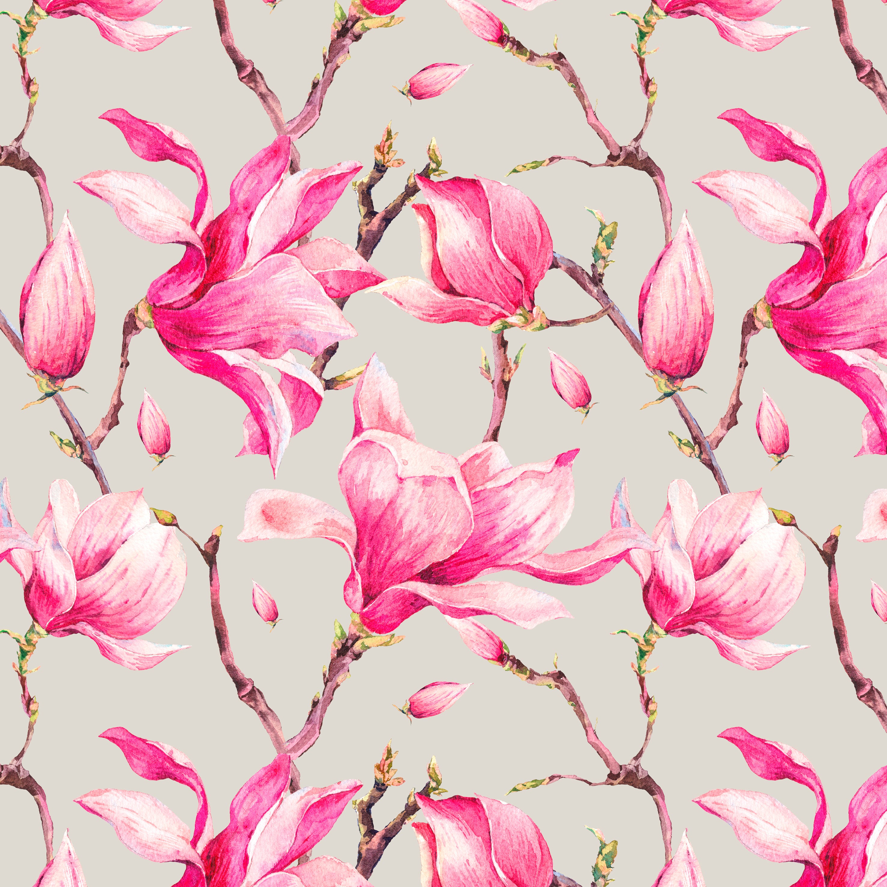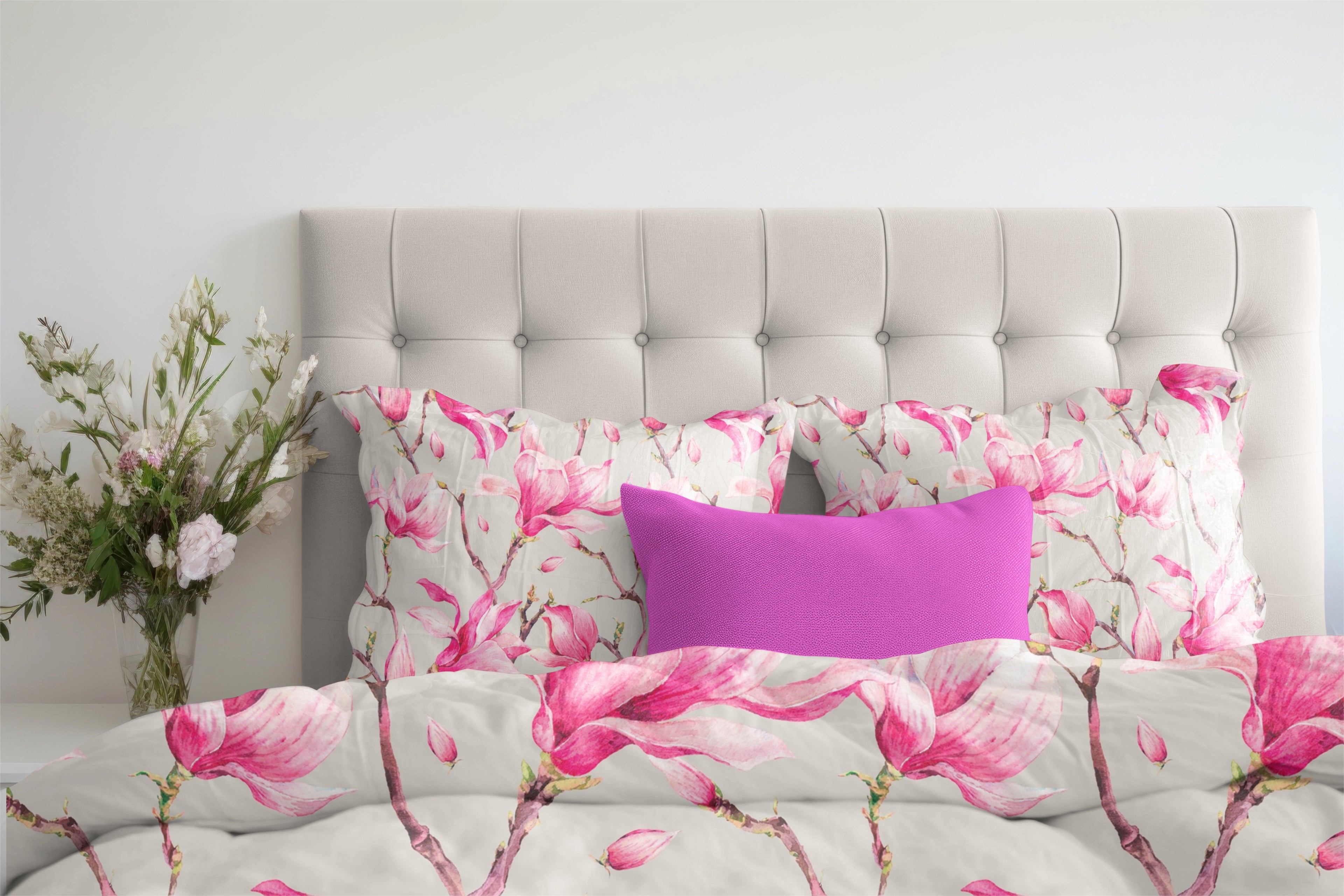 Duvet Cover Set - Pink Magnolia, Twigs and Leaves