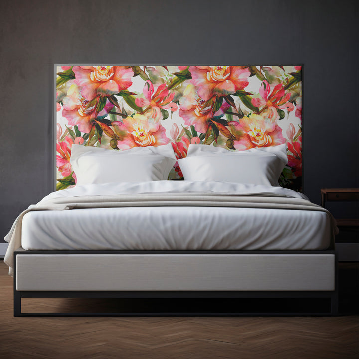 Fabric headboard with padding, including inner board and wall mounting fixture. We manufacture all headboards on either cotton or linen, depending on which fabric compliments the design most.