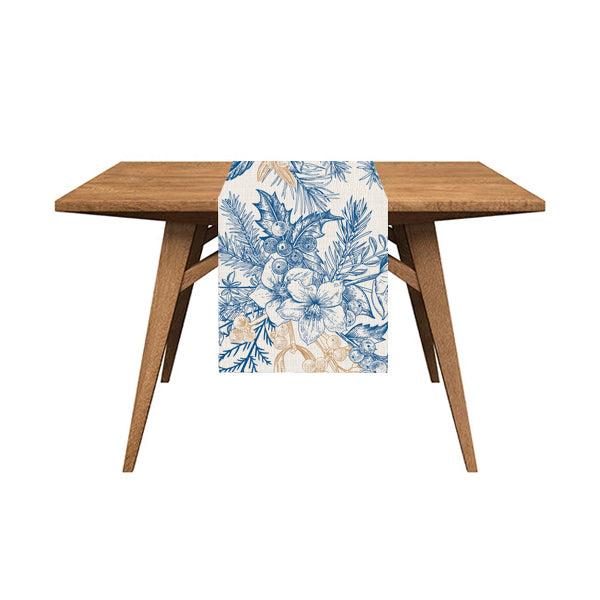 Runner - Christmas Flowers in Blue & Gold