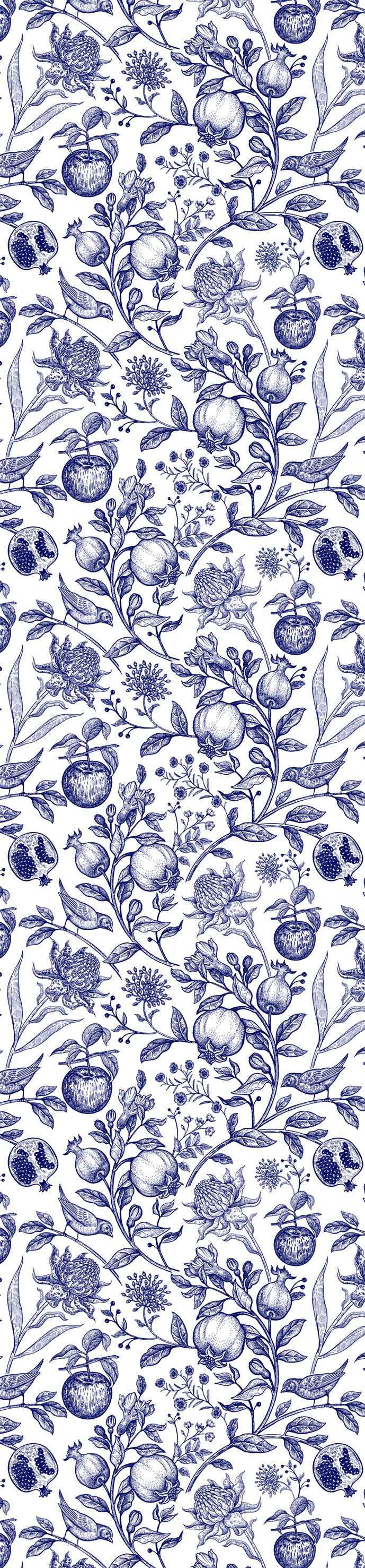 Runner - Delft Blauw Exotic Flowers, Birds and Fruits
