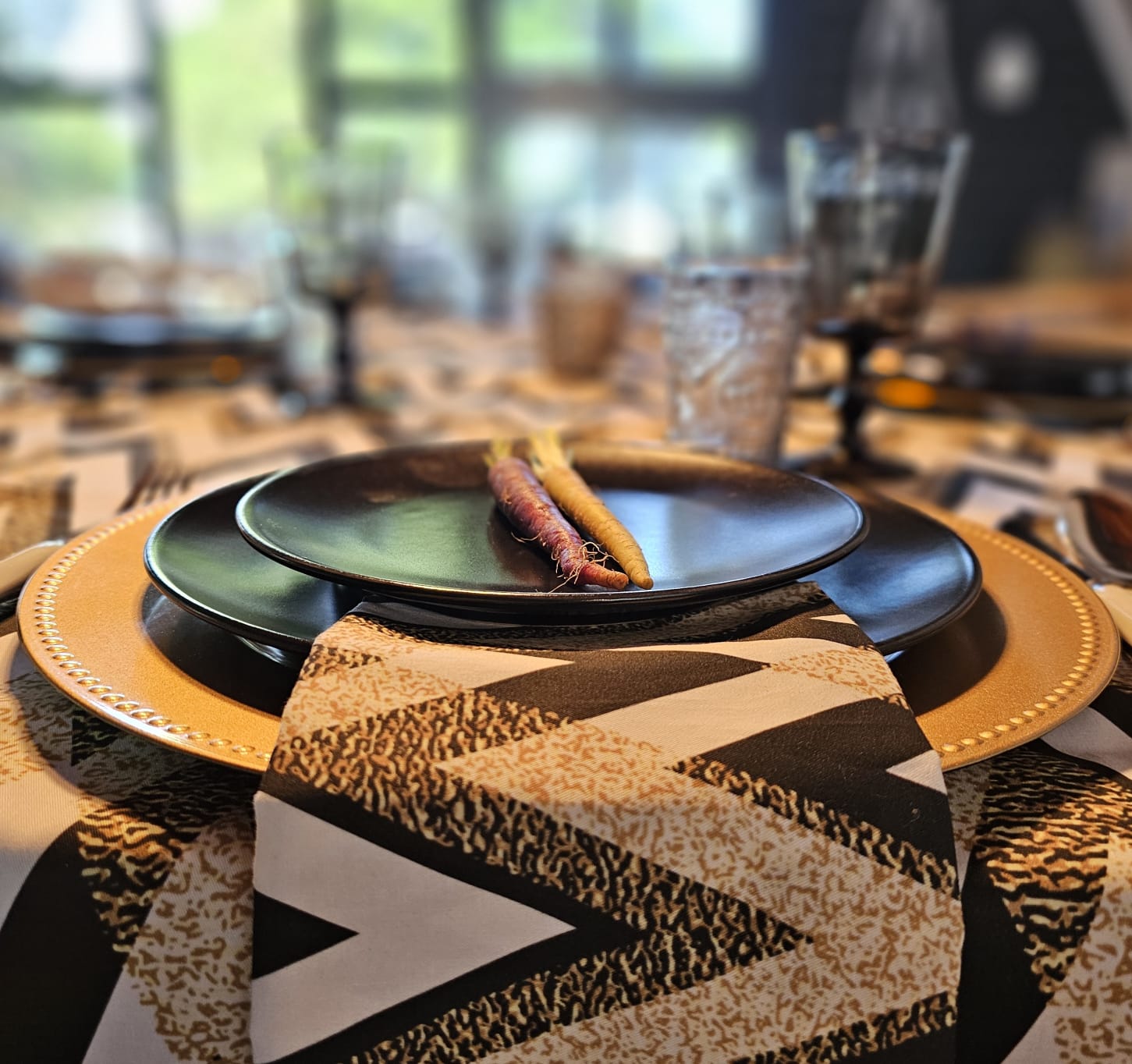 Bring your Christmas table decorations to life with this black and white design, with gold accents.
