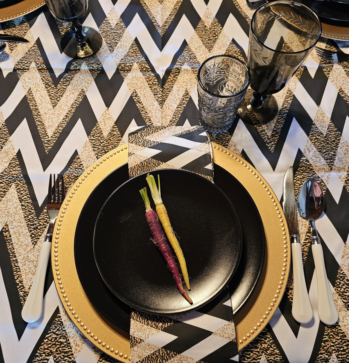 Bring your Christmas table decorations to life with this black and white design, with gold accents.