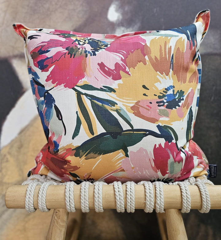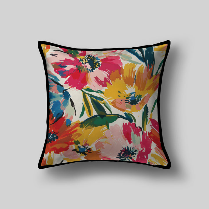Velvet & Cotton Cushion - Colorful Brushstroke Roses