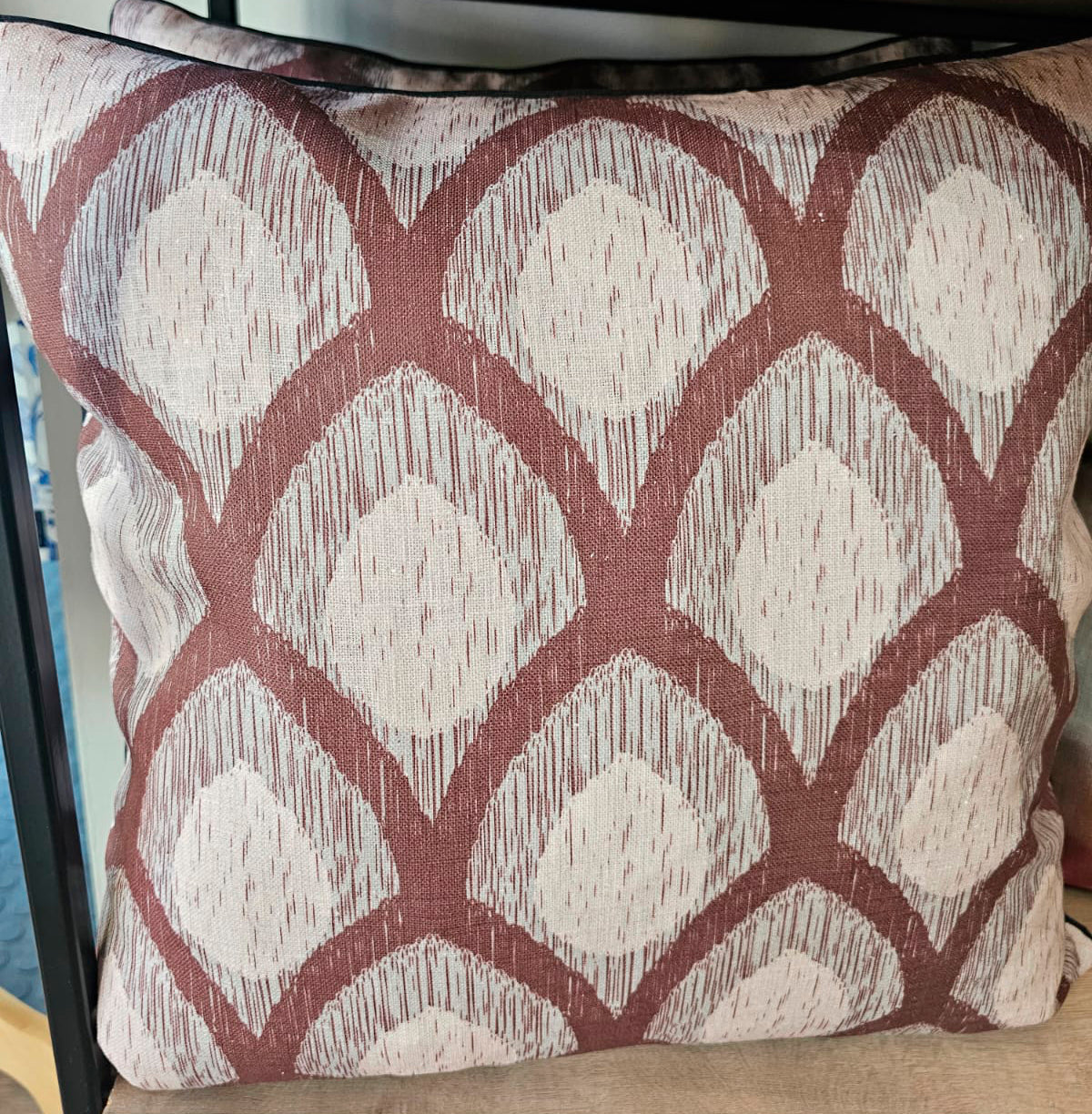 We've also added black piping, to give it a more sophisticated and modern look and feel. This design has a white backing.
