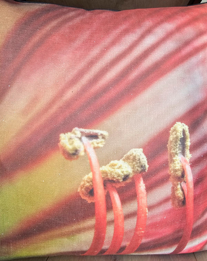 Velvet & Cotton Cushion - Red Lily