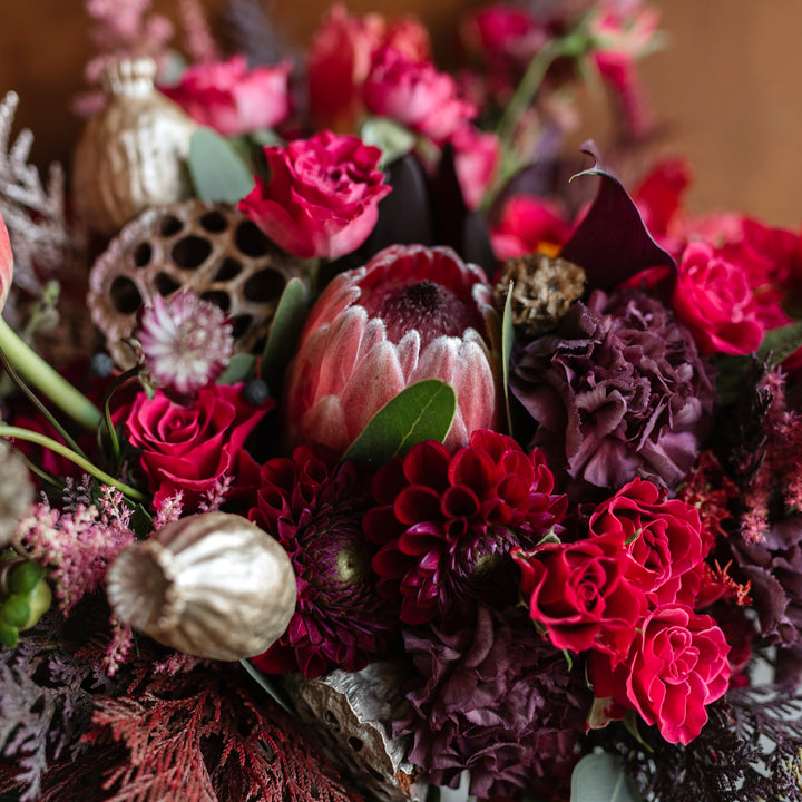Velvet & Cotton Cushion - Shades of Red Wedding Bouquet